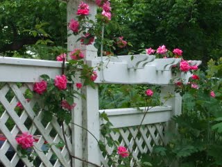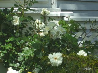 Climbing roses here at Abbington Green Bed & Breakfast Inn include the white r.”Iceland”in the Chartreuse Garden, the tiny,pale pink multi-flowered r.”Cecile Brunner” in the Parterre Garden and the 19th century, dark pink r.”Zephirine Droughin” in the Lower Garden. And while these varieties can all rebloom during the Summer, the first flush in May is the super show that we wait for all year!